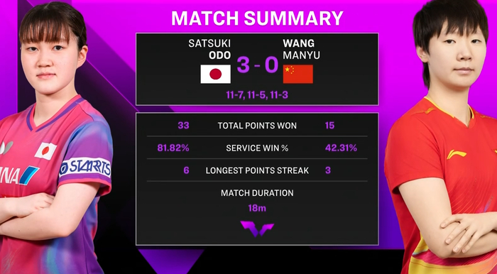 这场比赛不得不说大藤沙月的准备确实充分,全场比赛王曼昱都没有接好大藤沙月的发球,而且她的调动非常快,再加上强势的进攻效率与质量,完全把王曼昱给打懵了。希望后续王曼昱可以尽快调整吧,在后面的比赛打出好成绩。