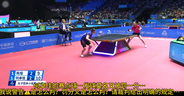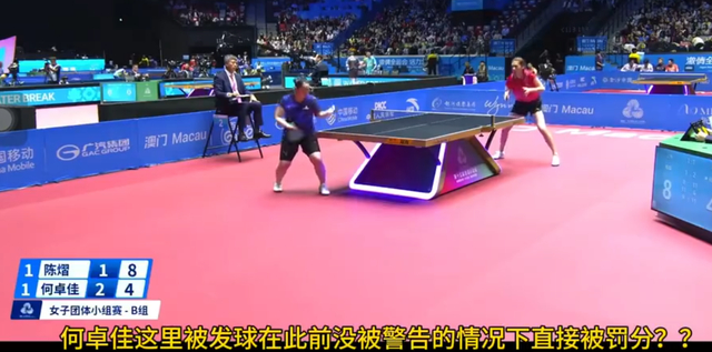 这场比赛裁判的吹罚多次出现争议,陈熠也有发球违例但只是警告,而何卓佳发球违例两次就是直接被罚分了,关键是裁判都没有看回放。