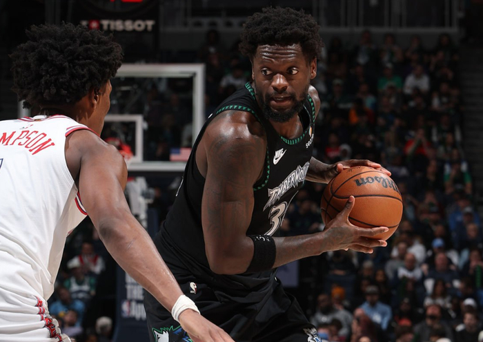 森林狼:康利、迪文琴佐、麦克丹尼尔斯、兰德尔、戈贝尔