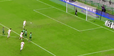 第54分钟,李磊禁区内踢倒买乌郎,主裁判马宁回看慢镜头之后判罚点球,萨里奇主罚点球破门,1比1!