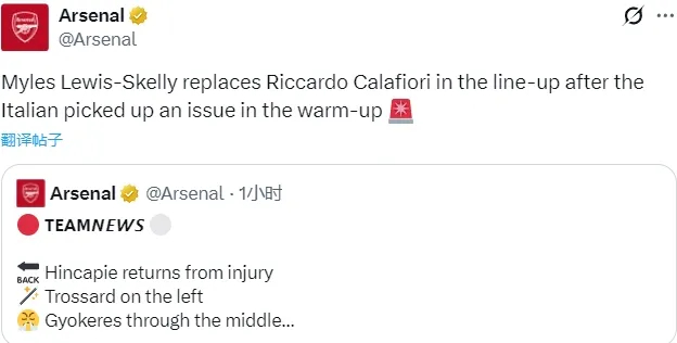 这个赛后阿尔特塔也有提及,用塔子的话,问题不是热身时产生的,是比赛前一天就有……但究竟是什么问题,阿尔特塔没说。